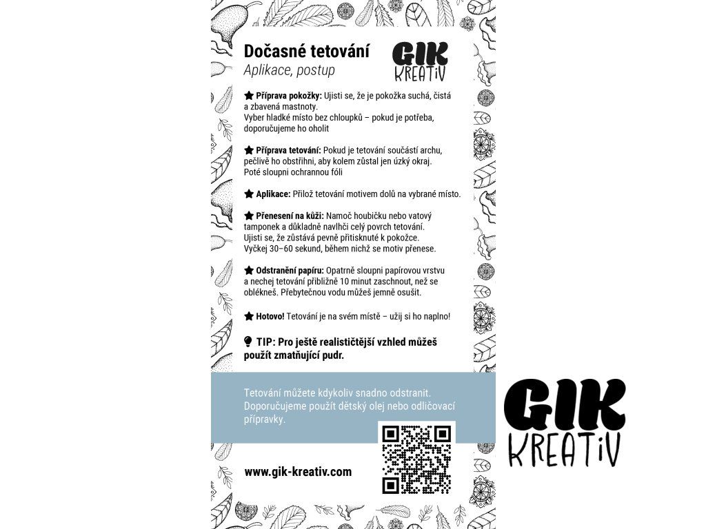 Tetovačky jsou testované, nezávadné a vyrobené v České republice.