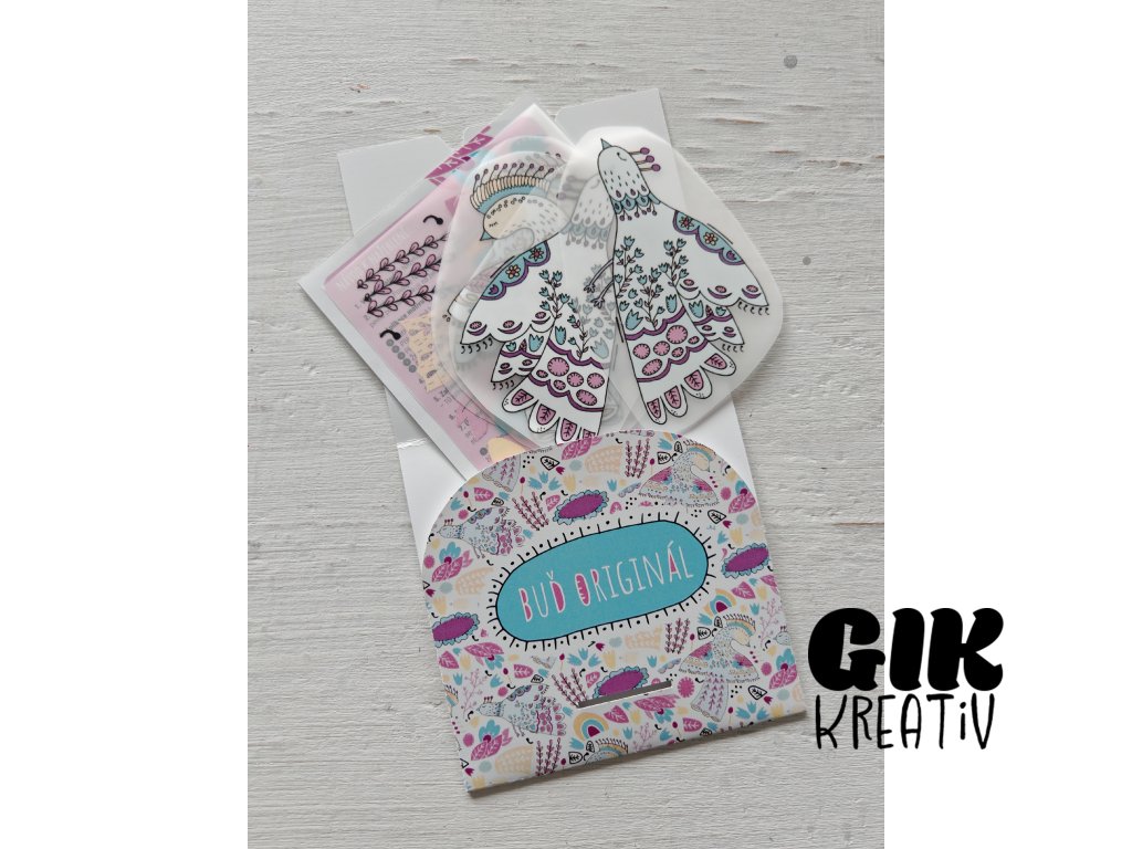 Tato sada obsahuje 4 nažehlovačky holubiček a 1 sadu menších motivů, které si můžeš rozstříhat, kombinovat a libovolně vyskládat – na tričko, mikinu, tašku nebo látkový pytlík.