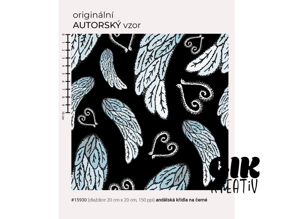 Vzor - andělská křídla na černé - Základní komerční licence