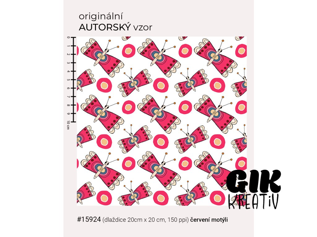 Originální autorský bezešvý vzor ve formě dlaždice o velikosti 20 × 20 cm (150 ppi).