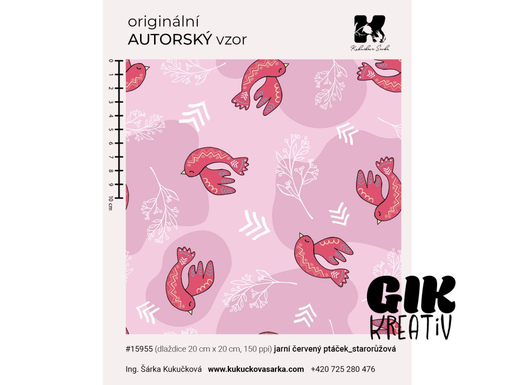 Originální autorský bezešvý vzor ve formě dlaždice o velikosti 20 × 20 cm (150 ppi).