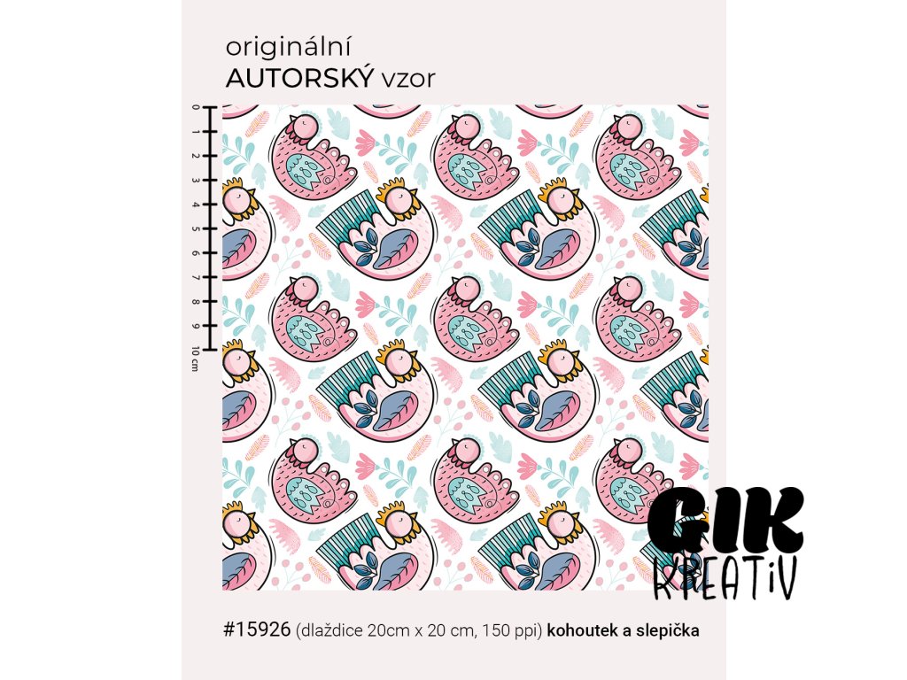 Originální autorský bezešvý vzor ve formě dlaždice o velikosti 20 × 20 cm (150 ppi).
