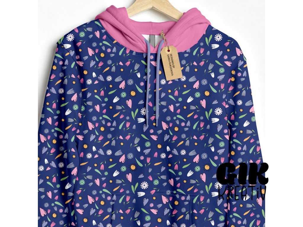 Vzor - srdíčka a kvítky tmavě modrá - Základní komerční licence