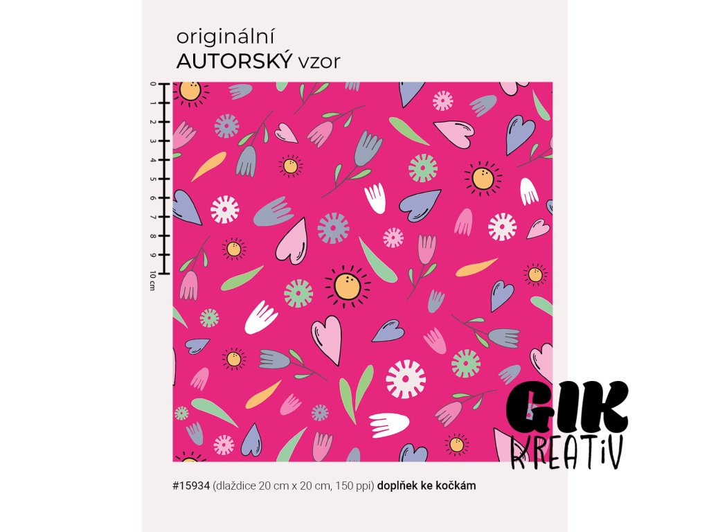Vzor - srdíčka a kvítky na fuchsiové - Základní komerční licence